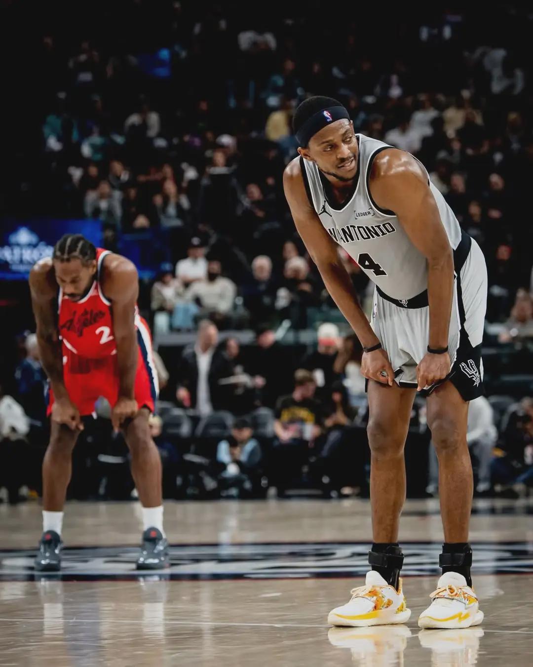 此役伦纳德投篮16中10,三分5中4,0罚球,拿到24分6篮板5助攻2抢断,正负值-3。除了伦纳德之外,其余快船球员三分21中1。这是两队本赛季最后一次交手,马刺成功三杀快船。前两次交手马刺各赢4分,今天大胜快船19分。